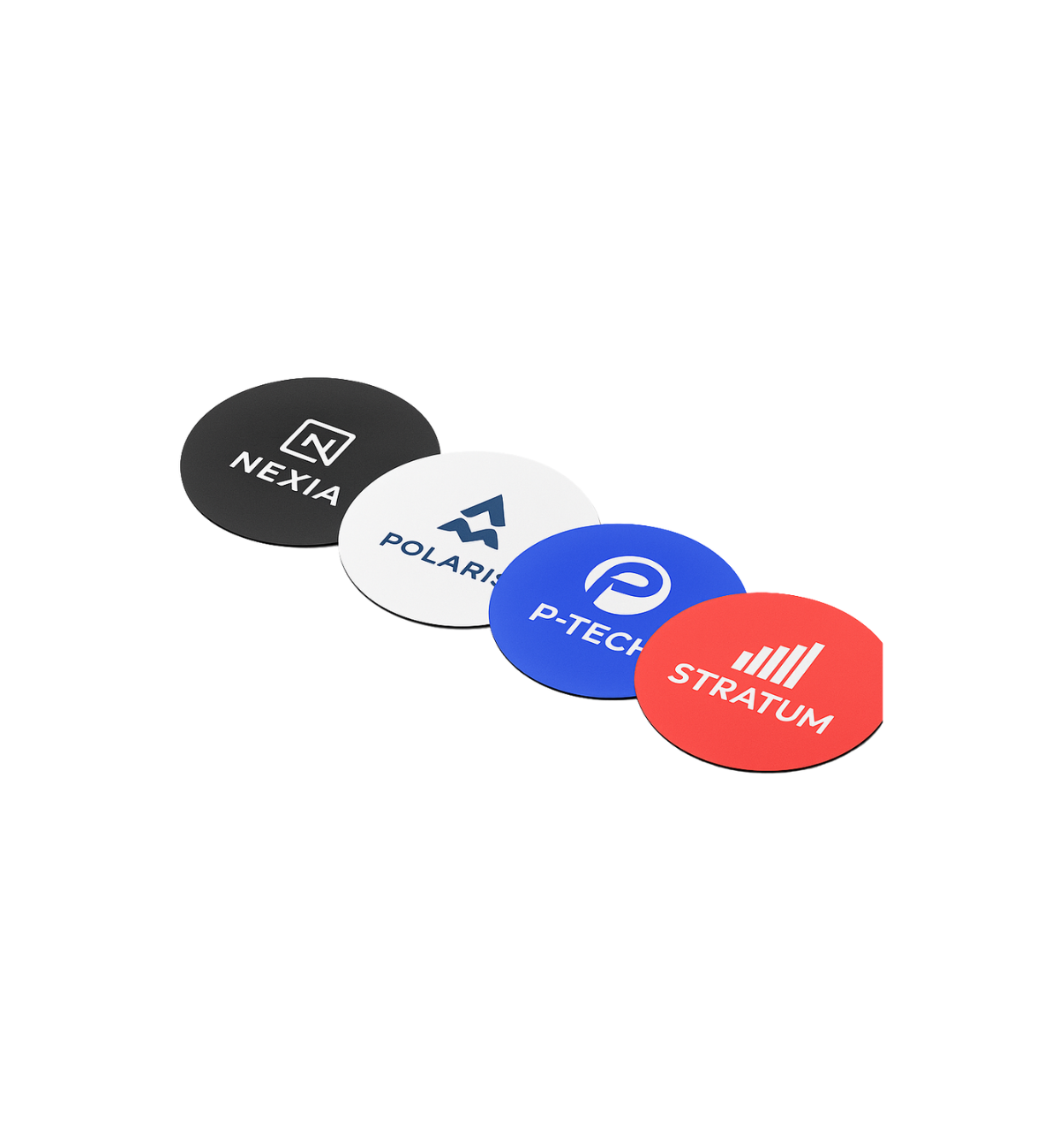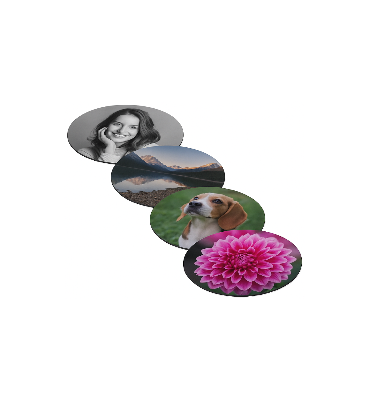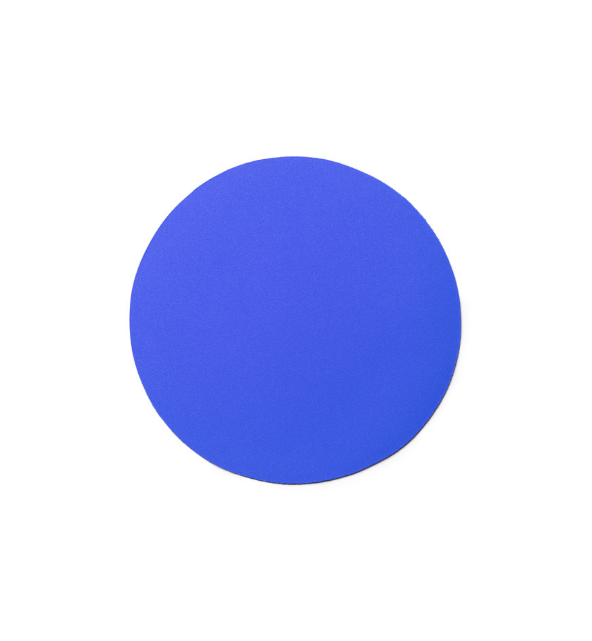 Alfombrilla para ratón de formato redondo, con superficie de suave poliéster y base antideslizante.