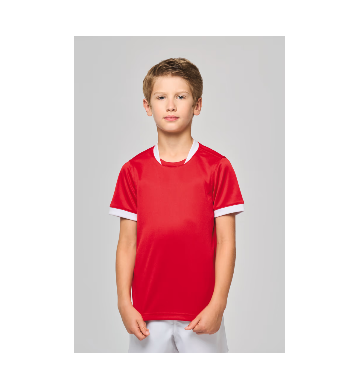 100% poliéster. Punto interlock. Corte recto. Corte y confección. Cuello redondo en canalé de contraste 1x1 en blanco para todos los colores con inserción de interlock a tono. Canalé blanco 1x1 en contraste en los puños en todos los colores. Forro de interlock tono sobre tono. Costuras reforzadas de doble aguja en sisas, hombros y laterales de la prenda. Acabado de doble aguja en la parte inferior de la prenda.