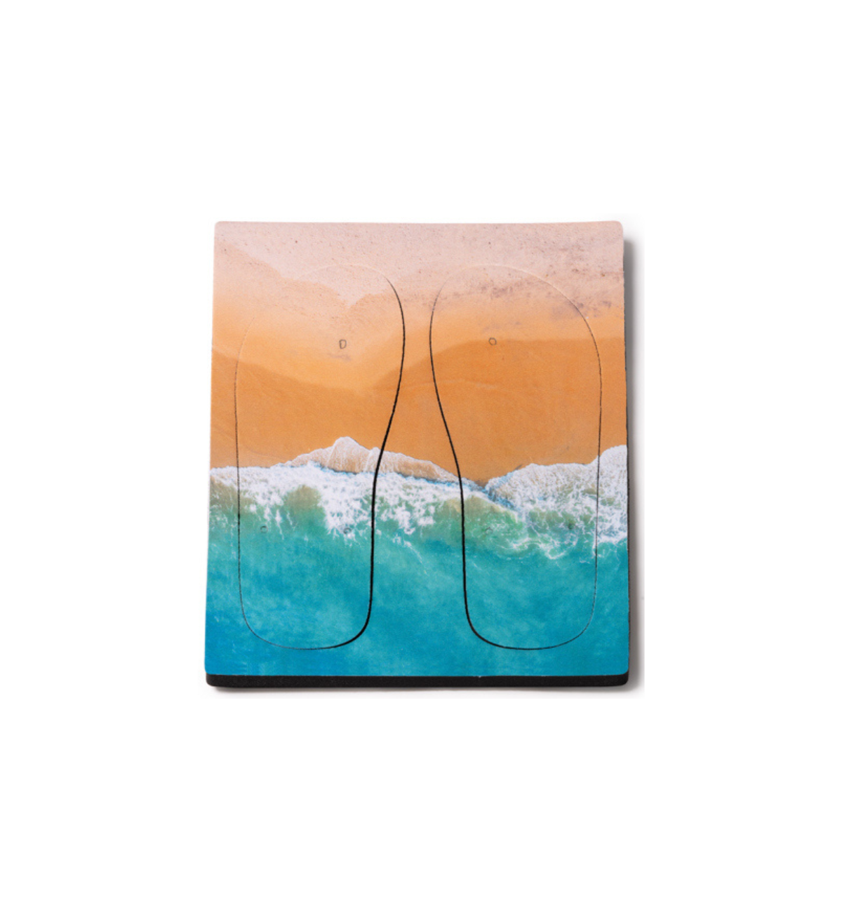 Par de chanclas para sublimación con cómoda suela de PE en tablero precortado con su forma. Incluye tiras de PVC en color negro.