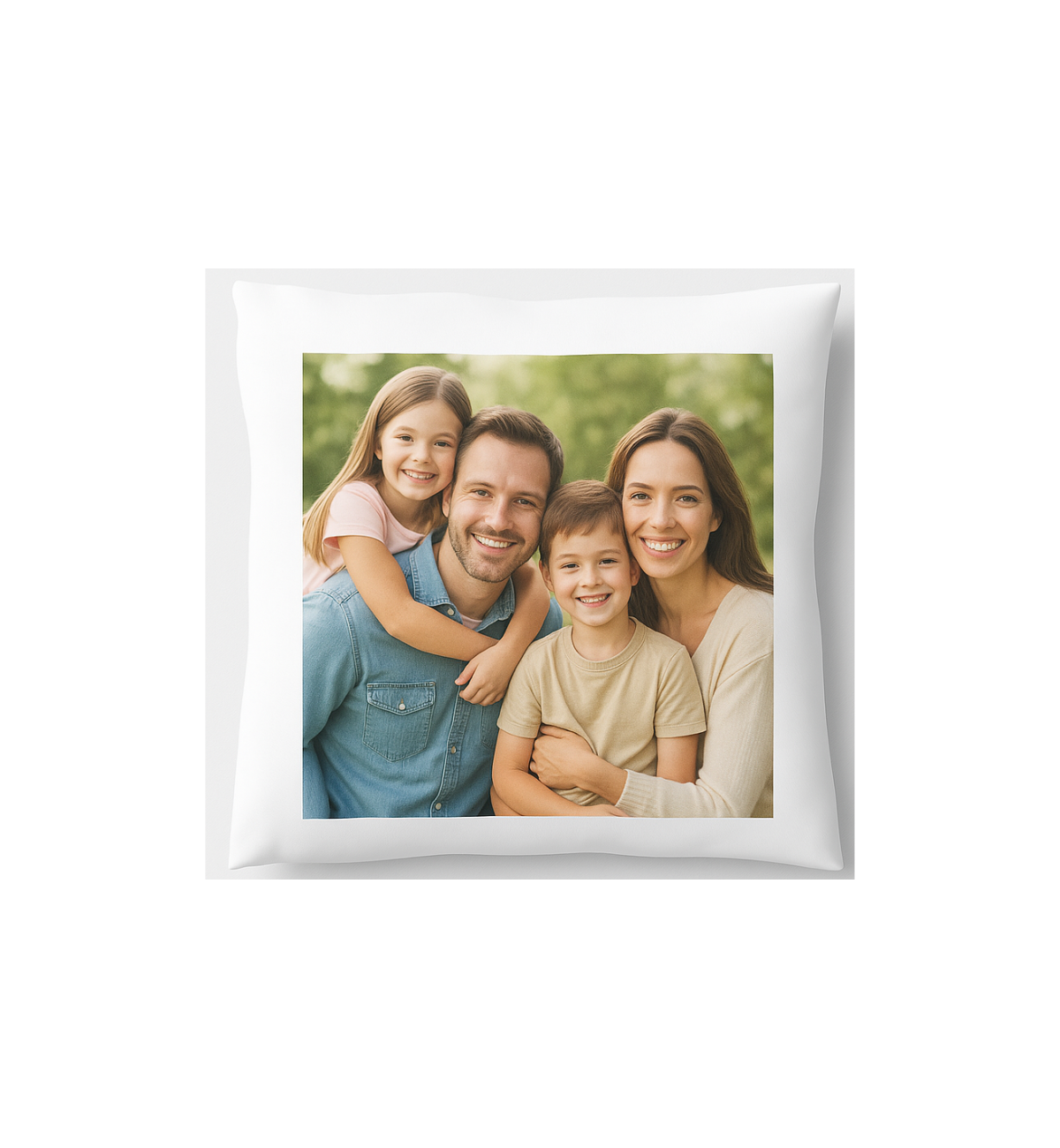 Funda de cojín con tacto de algodón y forma de corazón o cuadrada, personalizable mediante la técnica de la sublimación.
