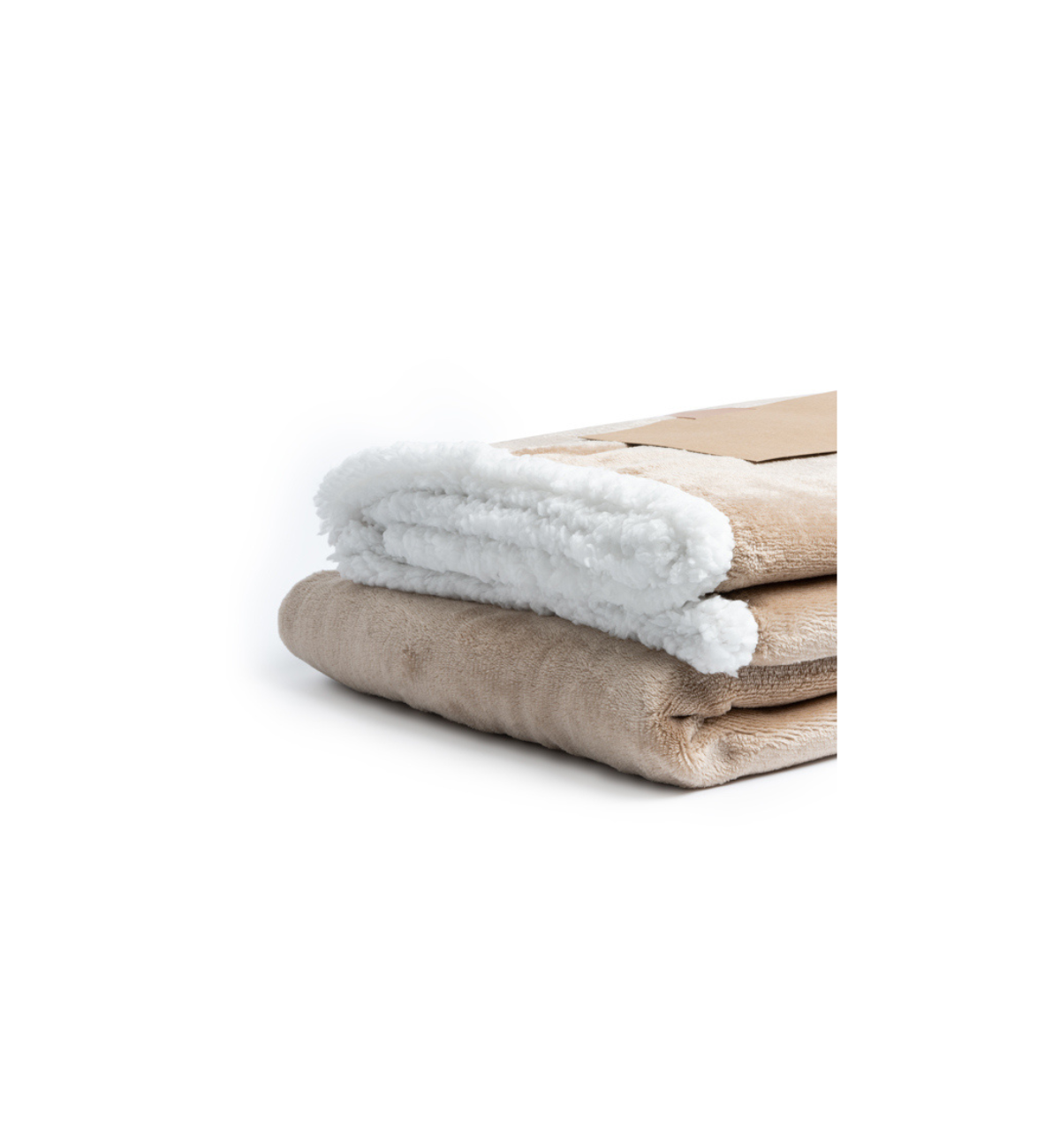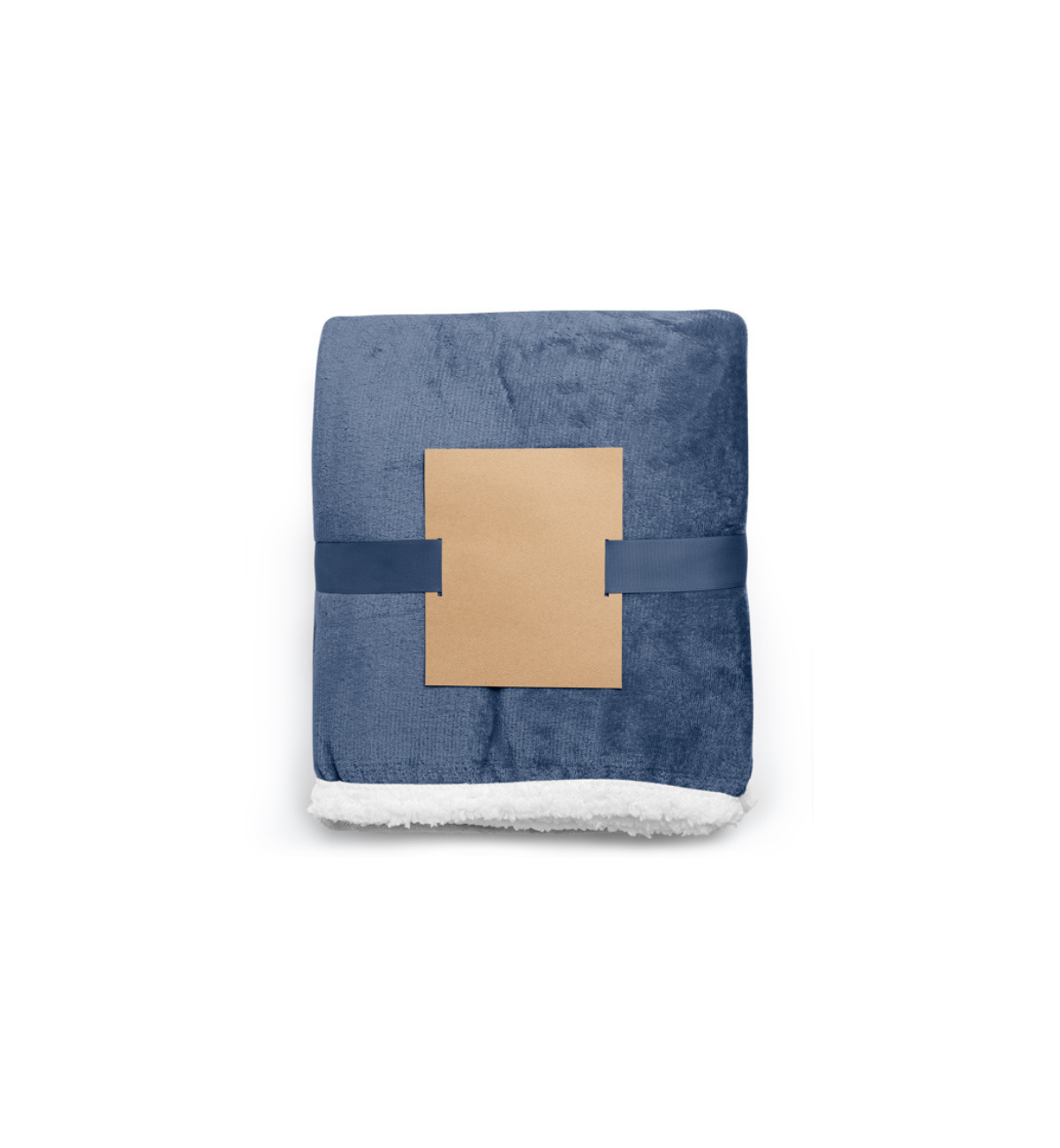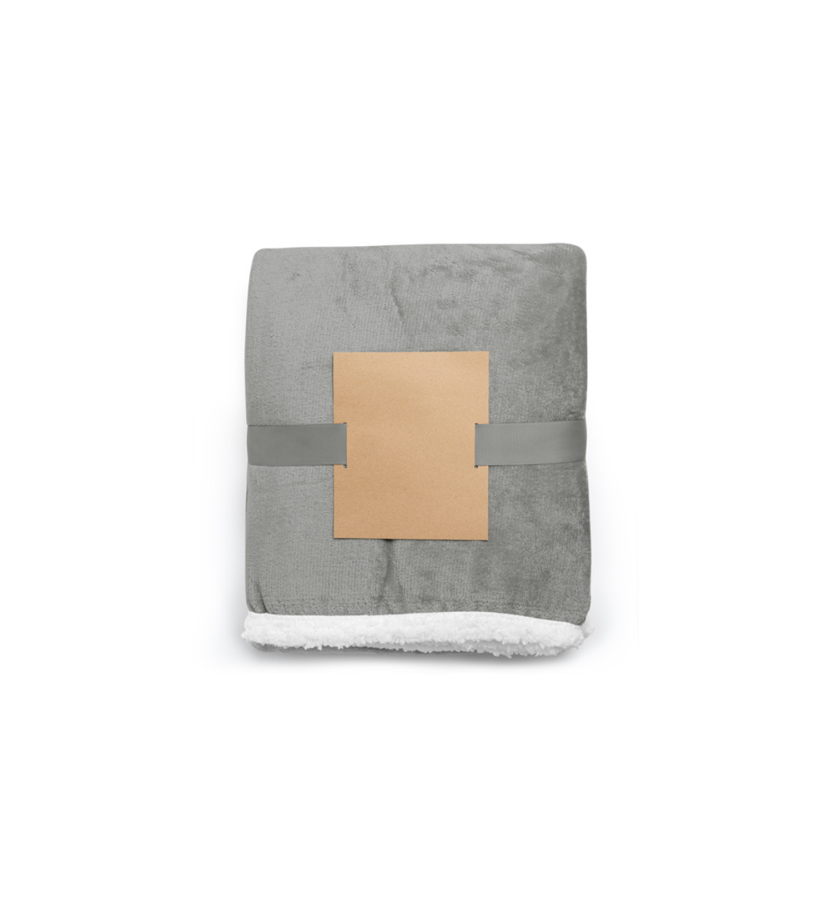 Manta polar de estilo Sherpa con polar fleece de 380 g/m². Incluye tarjeta ideal para marcaje y cinta de color a juego.