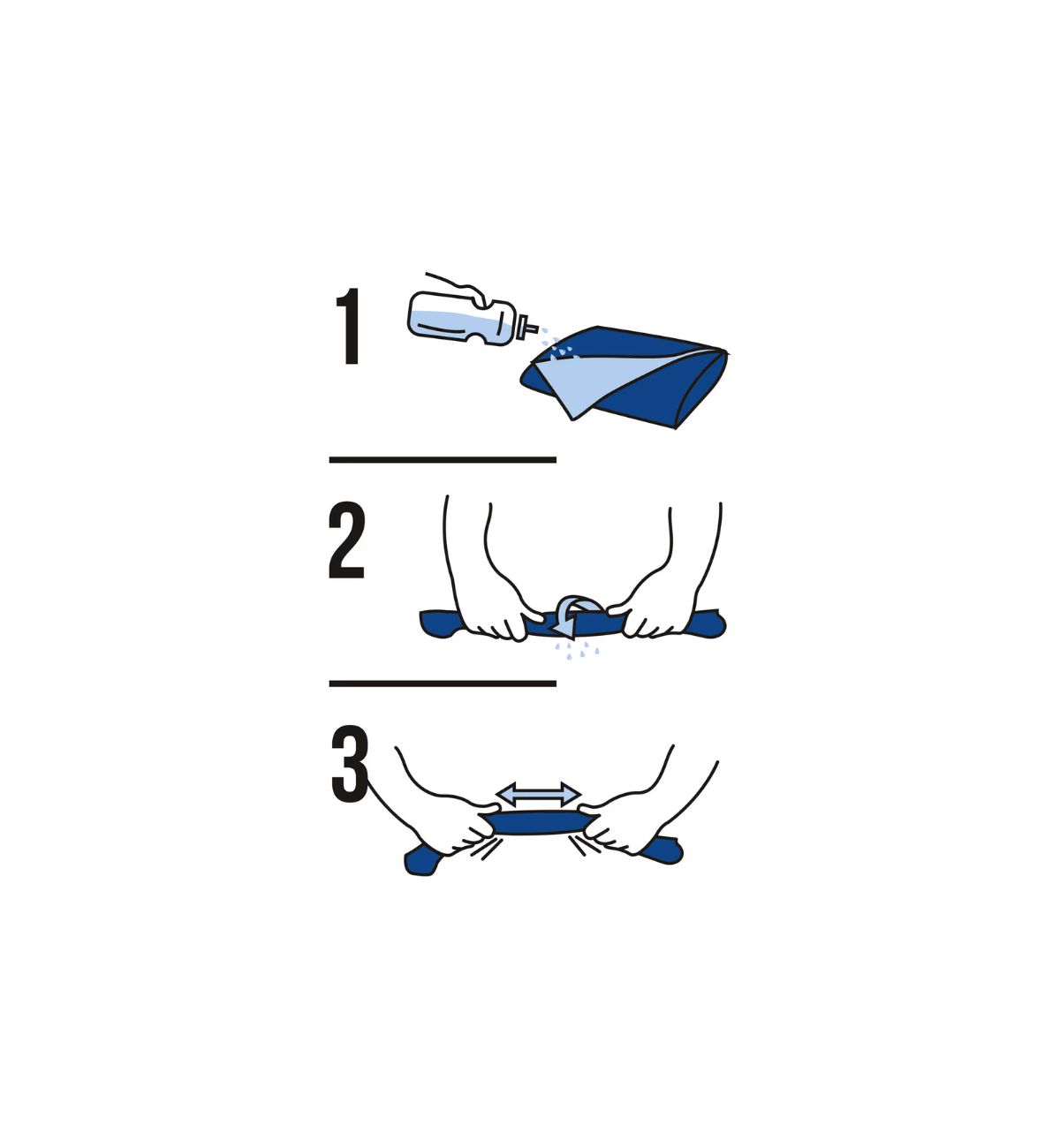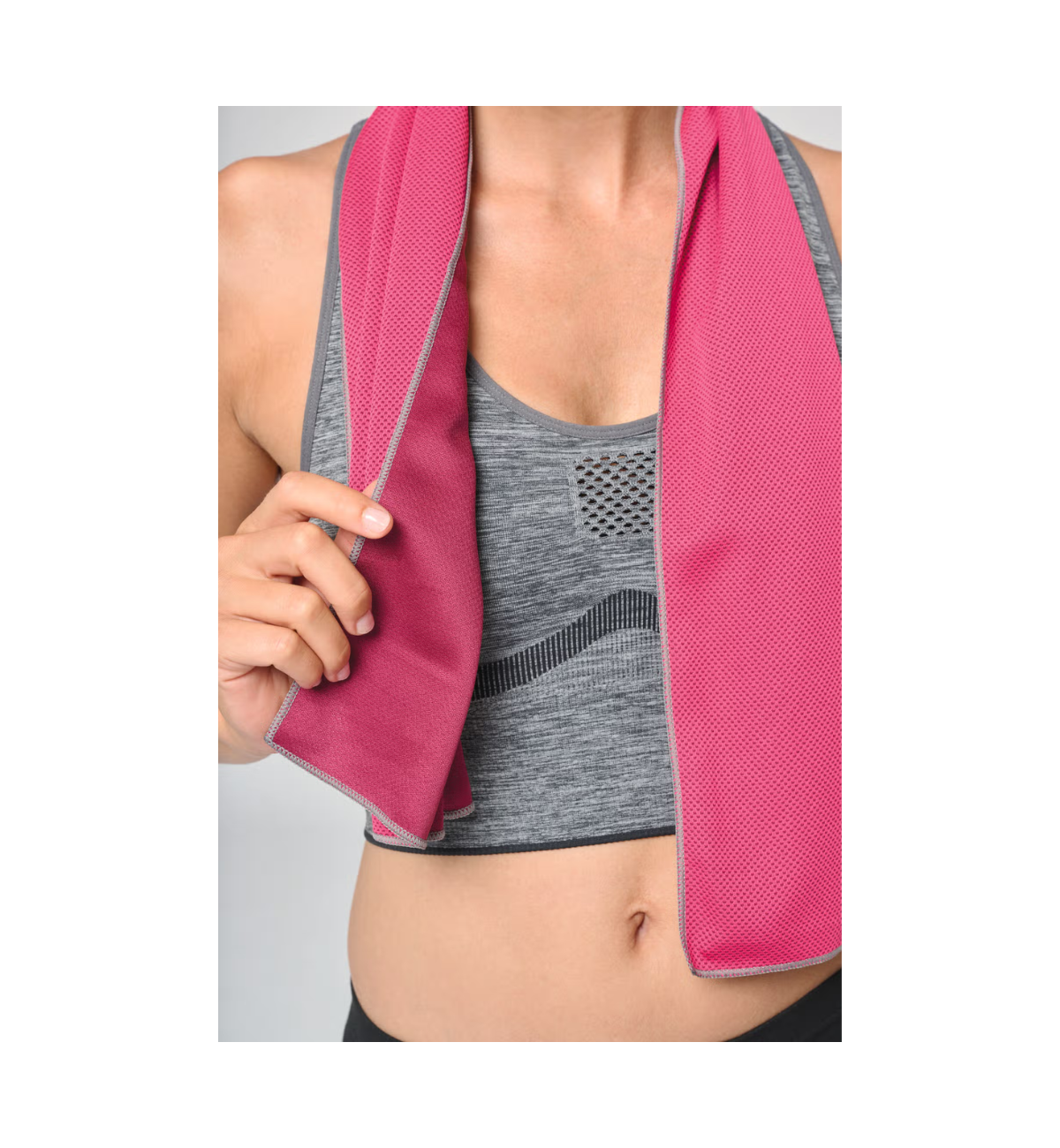 100 % poliéster. Refresca de forma instantánea al mojarla/escurrirla/sacudirla reduciendo de esta forma la temperatura media del cuerpo. Acabado con costuras contrastadas. Dimensiones: 100 cm x 30 cm